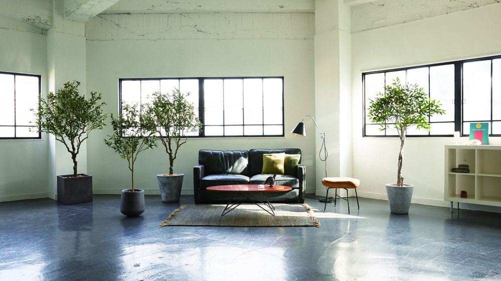 人口樹木と鉢がセットになって、コーディネートされた状態でお届け。5分程度の組み立てでバランスの良いグリーンになります。